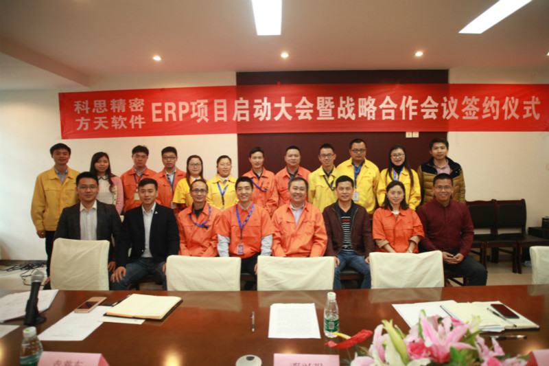 科思与方天软件建立ERP战略合作,标志着我公司ERP项目正式启动,我们将结合方天公司一流的信息架构、技术和解决方案,以及方天软件经验丰富的实施顾问、实施方法论和最佳管理时间,陆续完成项目管理、车间管理、供应链管理等涵盖公司绝大部分业务的信息化建设,为实现数字化管理打下坚实基础。